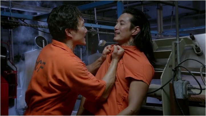 I like to have a little word with the writers please. I get that Chin doesn’t have a good stand in prison. He is a cop. One who put a lot of people behind bars. So, it is clear that a lot of people want to see him dead. I get that. What I don’t get is why doesn’t the same apply to Kaleo, and before that to Delano? That is simply stupid. Kaleo is a dirty cop, yes, but he is still a cop who put people in the very same prison he is in now. Same goes for Delano. And excuse me if I say that Kaleo doesn’t strike me as THE man. He was not a big wig when he was arrested; he was only a small stupid guy who got paid to warn the drug cartel of investigations or raids. And suddenly he has free reign in prison and practically runs the joint? Sorry, but I think that is ridiculous. And it looks like Chin is also a bit surprised about it.