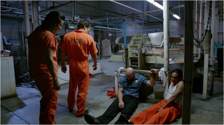 One thing is for sure, they will be looking at one hell of a clean-up job after this riot. I think the set department did a great job making us believe we’re looking at a prison under attack from the inmates. Great job, guys.