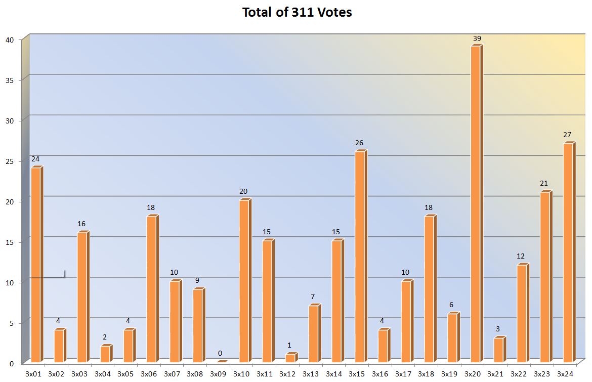 And now here are the complete statistics for the Season 1 to 3 voting.