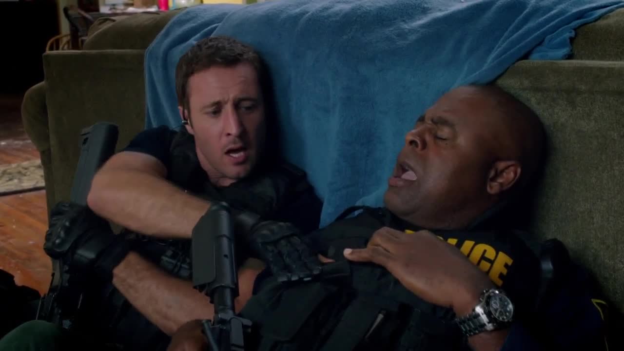 Almost 12 minutes into the episode and Danny makes an appearance. Actually I liked that they kept him on light duty after he was injured in last weeks episode. Finally keeping it a bit real. Even though I wonder where Steve’s wounds disappeared to. He had some nasty cuts on his face, just like Danny. Danny’s are still slightly there, but I guess Steve healed over night, just like when he was shot in the arm in 4.08, there was also never a scar. 😉