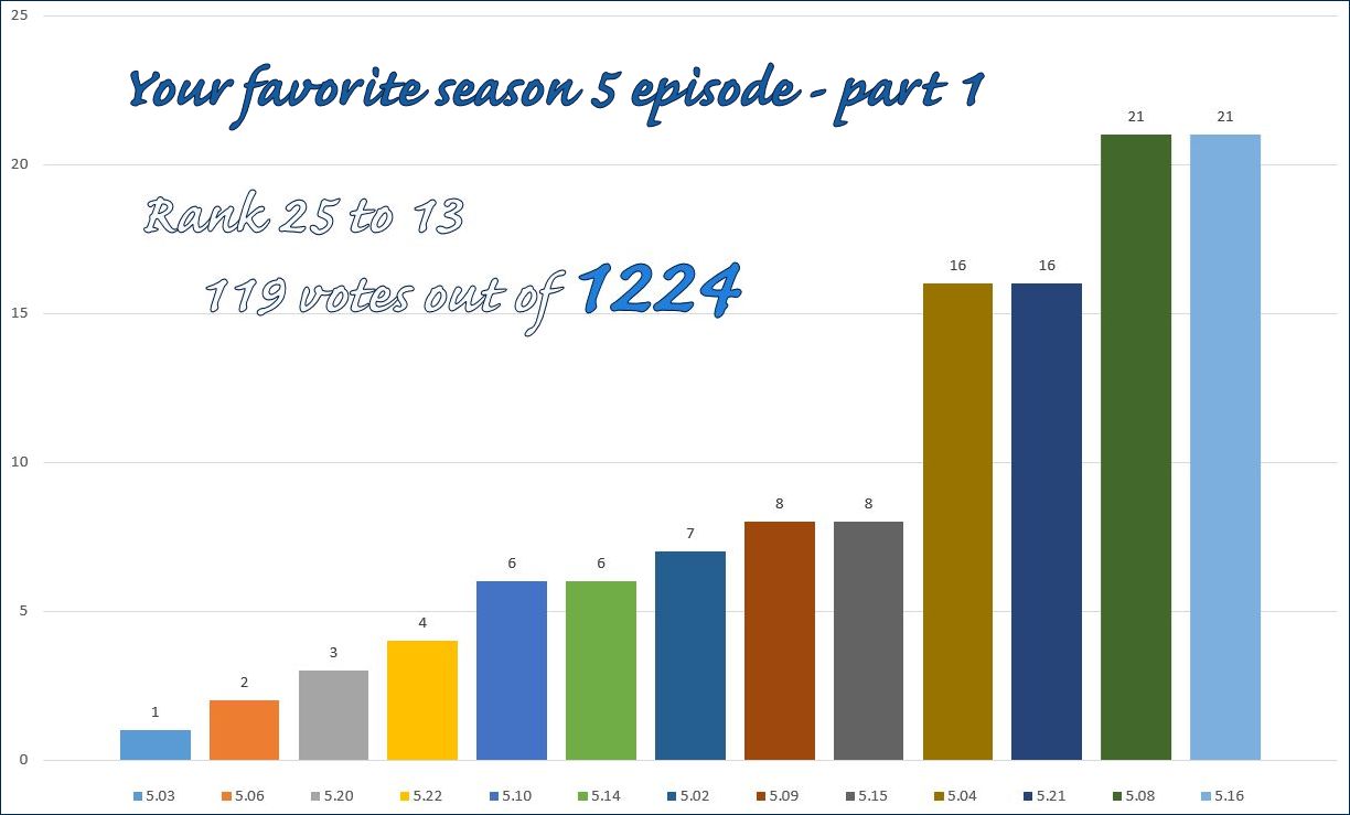 Wow! 1224 votes for your favorite season 5 episodes. Thank you all so much for voting and sharing the fun with us.